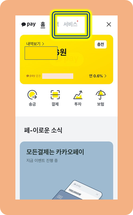 화면 상단에 보시면 제가 정사각형으로 표시한 Pay라고 쓰여 있는 곳이 있어요