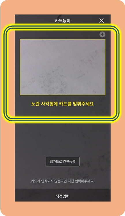 카메라 사진을 찍지 않으려면 하단을 직접 눌러 카드 번호를 직접 입력할 수 있습니다.