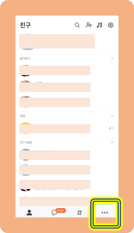 그러면 즐겨찾기, 친구, 채널 등의 목차가 표시됩니다.