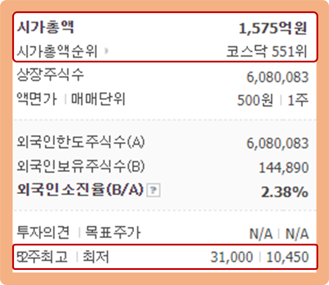 52주 최고가는 31,000원이며, 52주 최저가는 10,450원이네요.