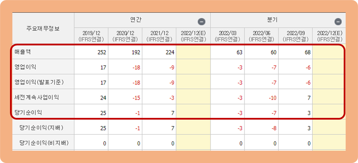 아쉽게도 2022년 3분기 누적 순이익이 약 -7억원 손실을 기록중으로 다시 적자 전환이 될 가능성이 높아보이네요.