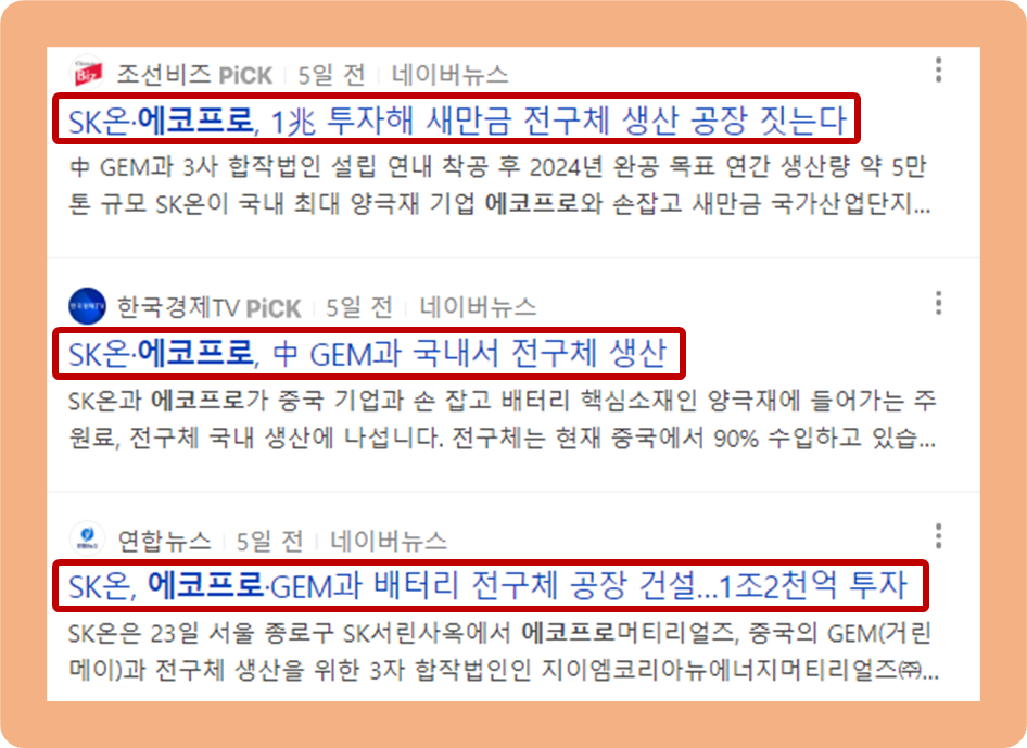에코프로 주가, SK온, 중국 GEM과 업무협약 체결