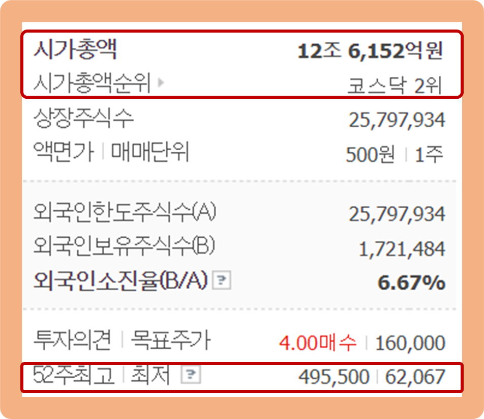 현재 기준 시가총액이 무려 약 12.6조원으로 코스닥 2위를 차지하고 있는 기업이구요.