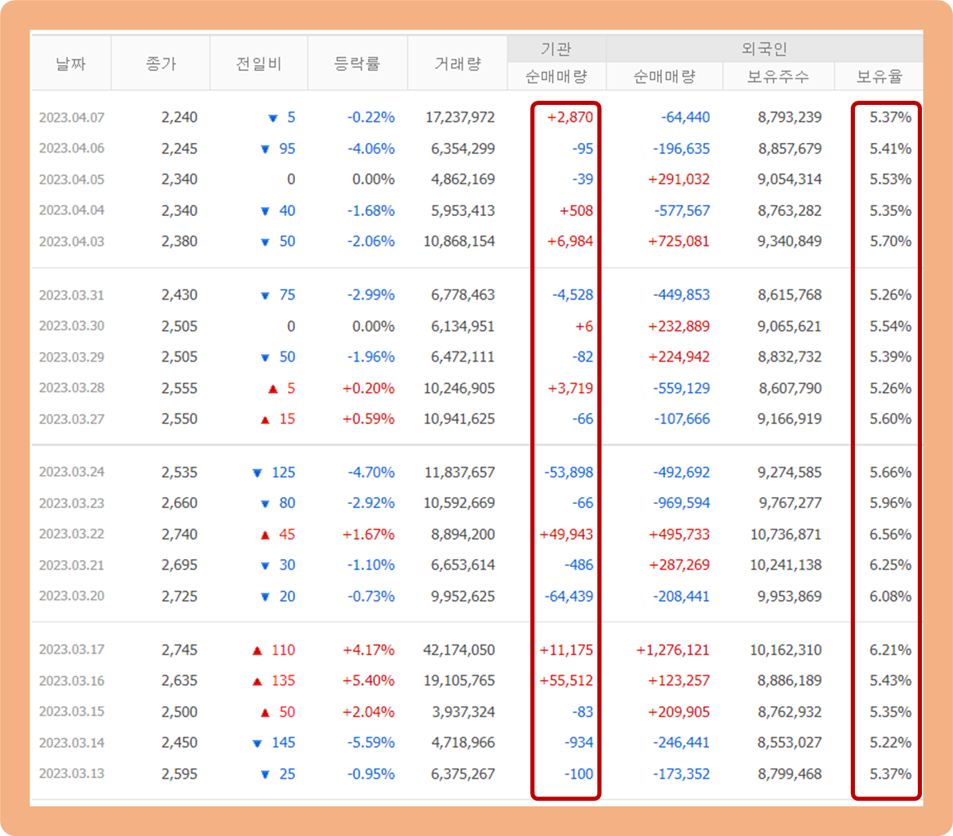 휴림로봇의 기관투자자 및 외국인 투자자 주식 매매 동향에 대해 살펴보도록 하겠습니다.