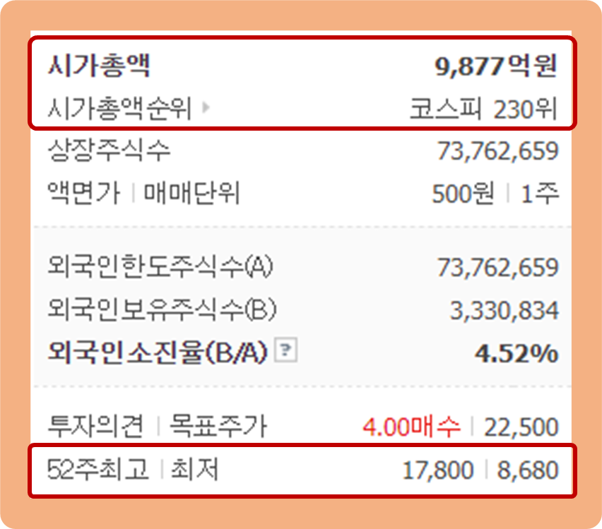52주 최고가는 17,800원이며, 52주 최저가는 8,680원이네요.