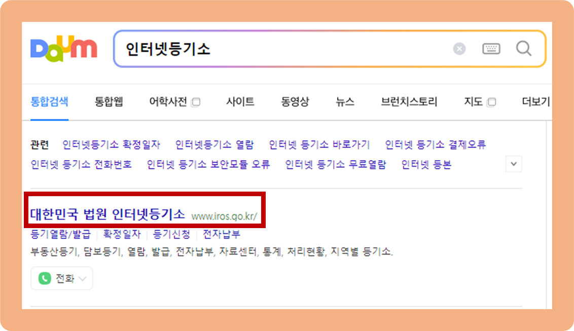 우선, 검색창에 인터넷등기소를 검색해주시구요.