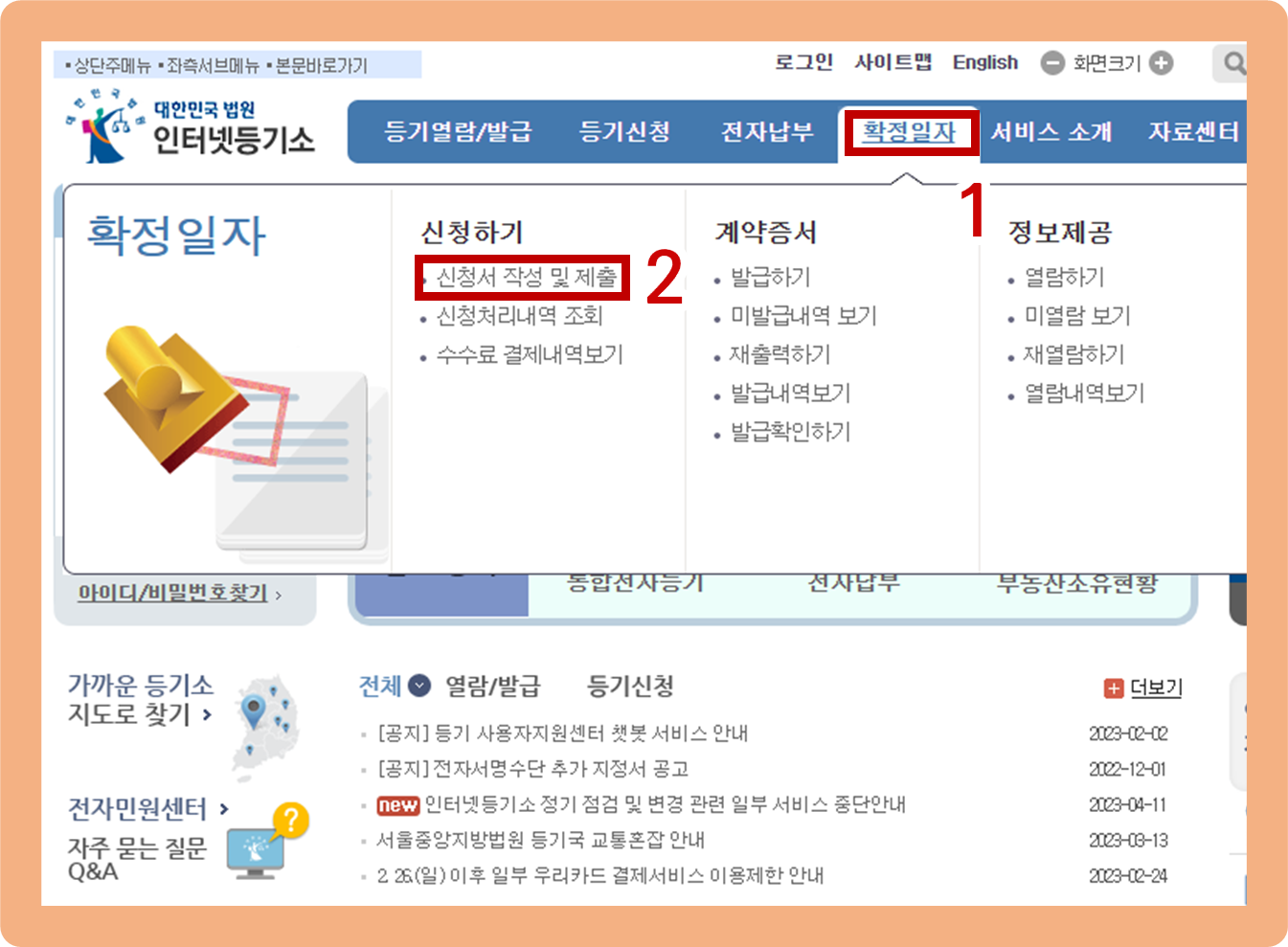 인터넷, 온라인 확정일자 받는법, 절차 진행