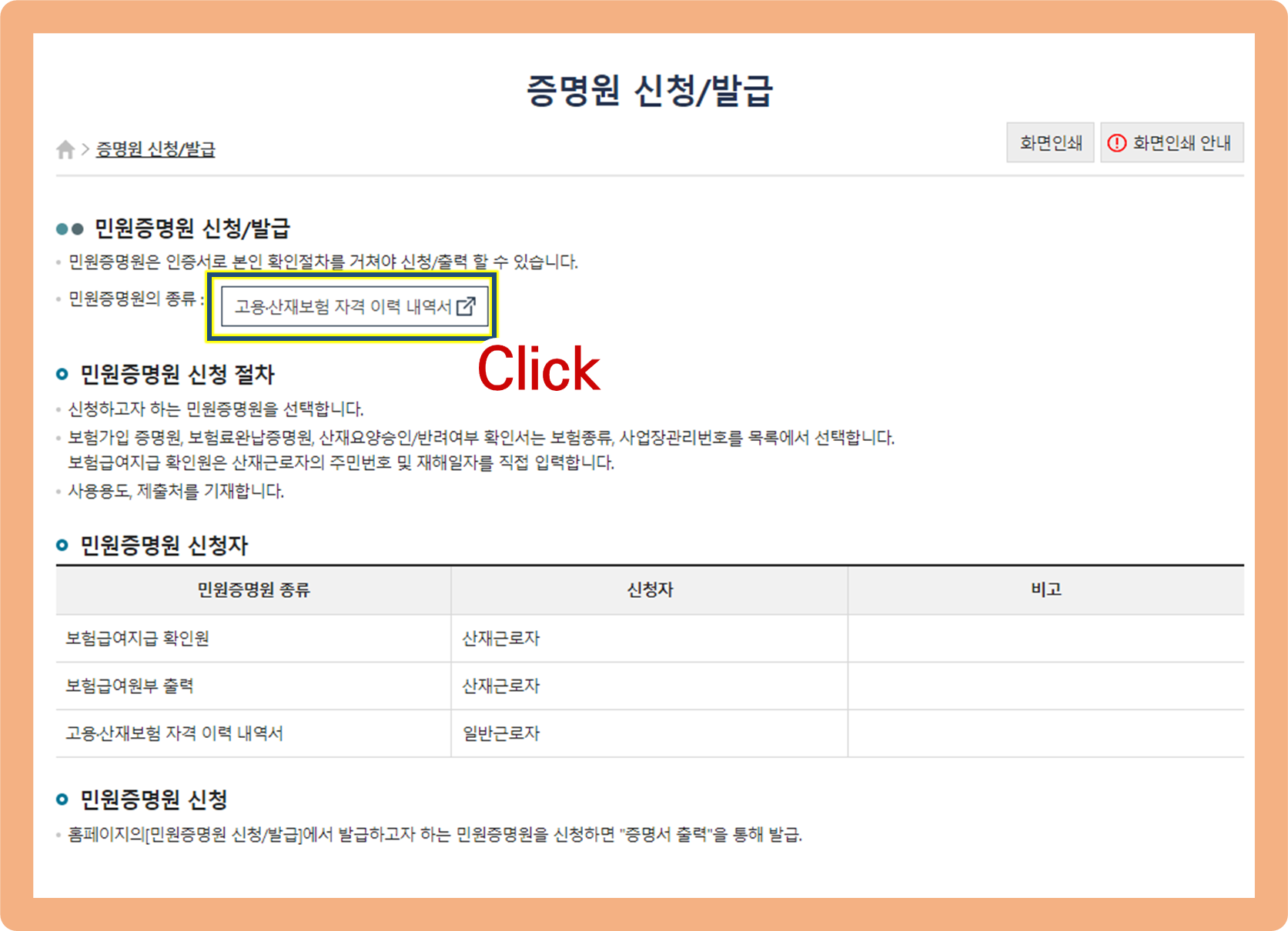 고용보험자격이력내역서 근로자용 발급 방법