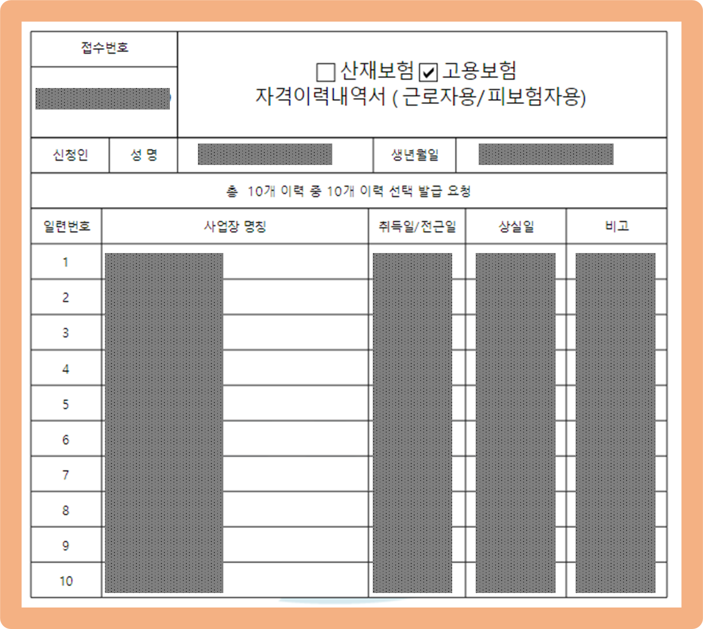 고용보험자격이력내역서 근로자용 발급 방법, 서류 내용 확인
