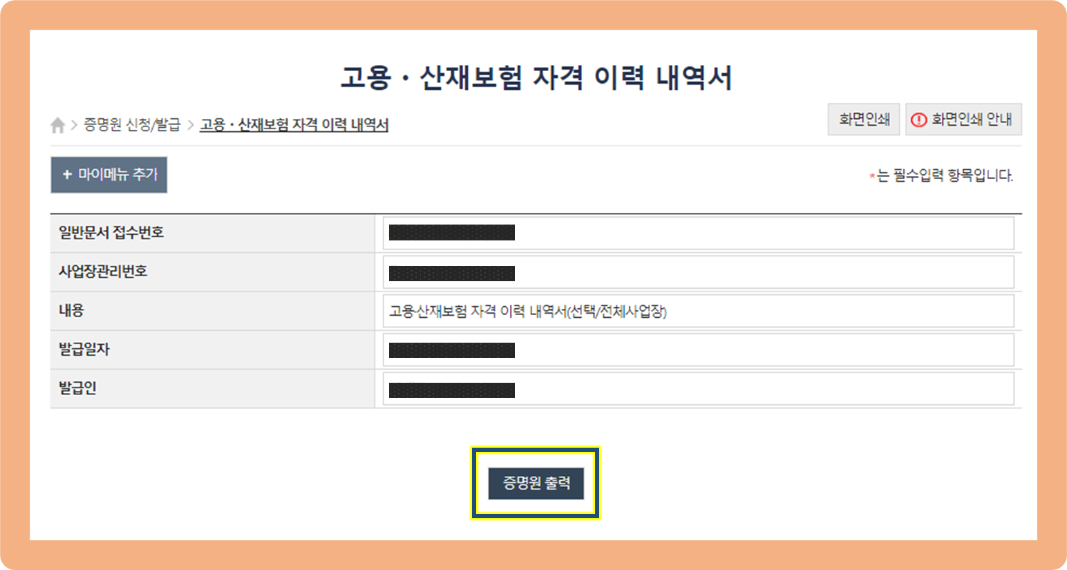고용보험자격이력내역서 근로자용 발급 방법, 다음 단계 진행