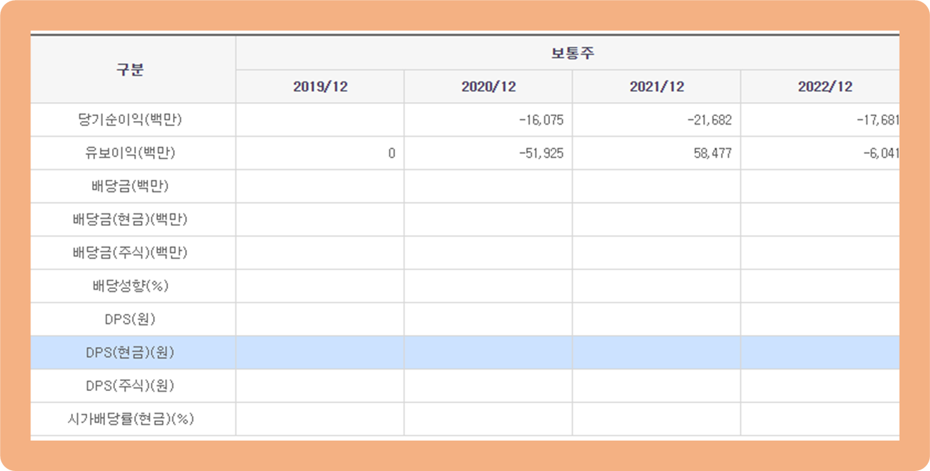 현재 이 기업은 주식을 보유한 주주분들께 배당을 실시하지 않고 있습니다.