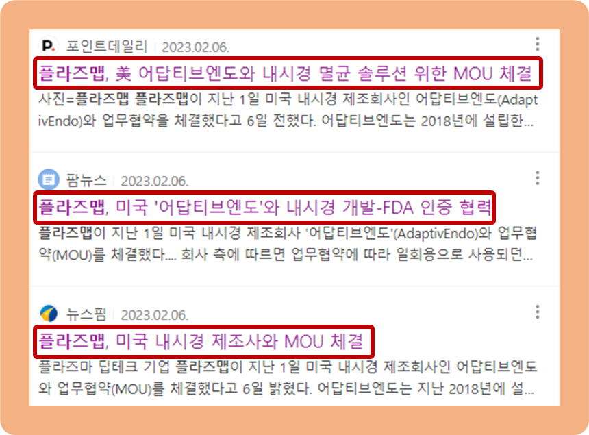 2023년 2월 1일, 플라즈맵이 어답티브엔도(미국 내시경 제조기업)와 업무 협약을 체결했습니다.