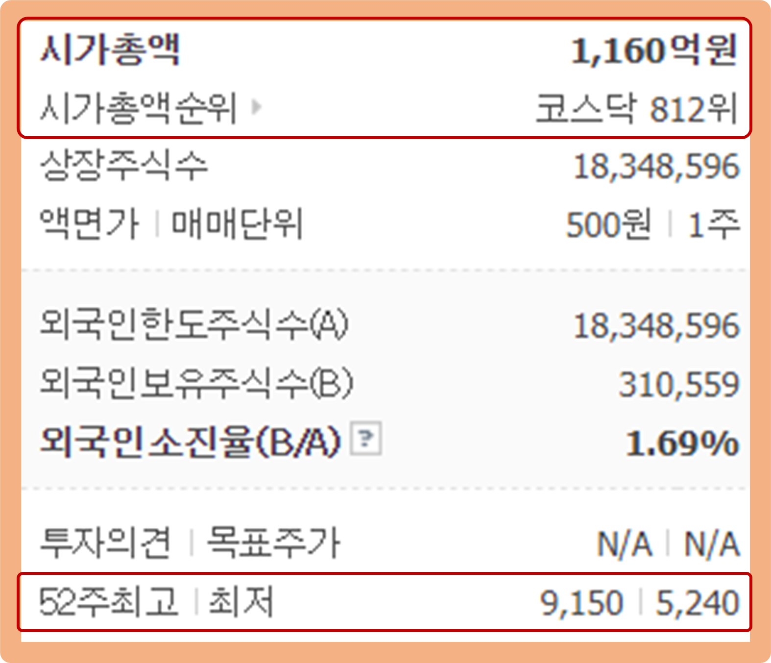 52주 최고가는 9,150원이며, 52주 최저가는 5,240원이네요.
