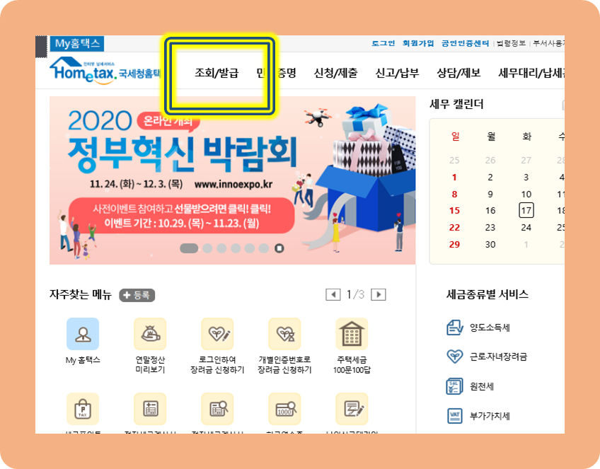 HomeTax 홈페이지로 넘어가 보겠습니다.
