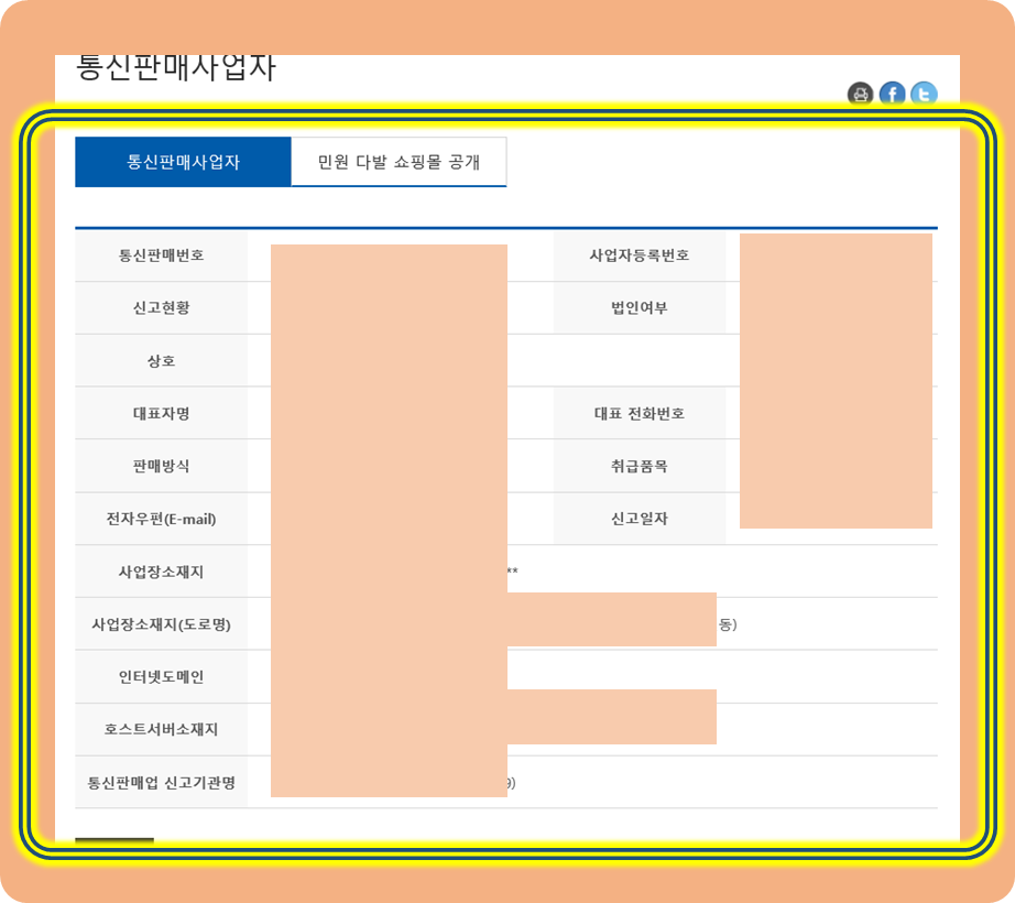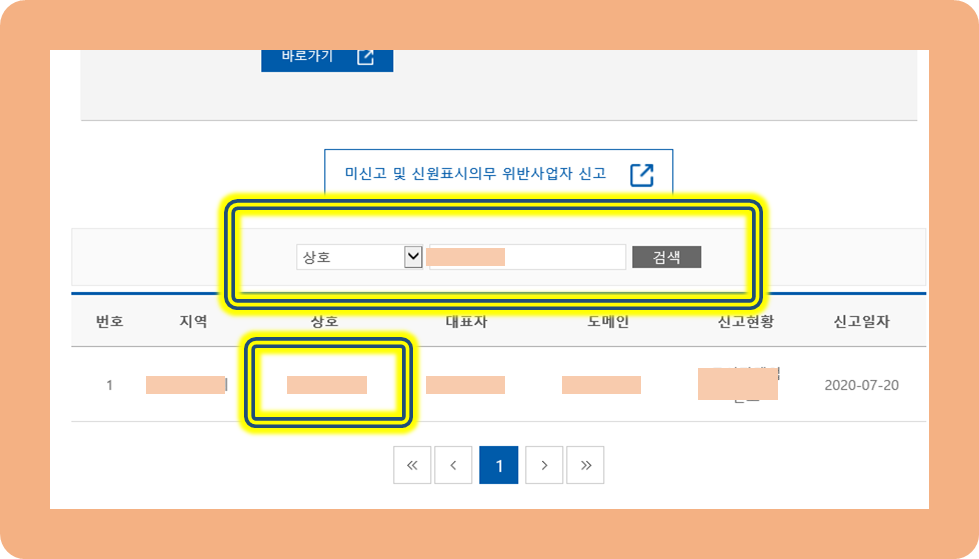 대표, 도메인, 신고일 등을 직접 볼 수 있네요.