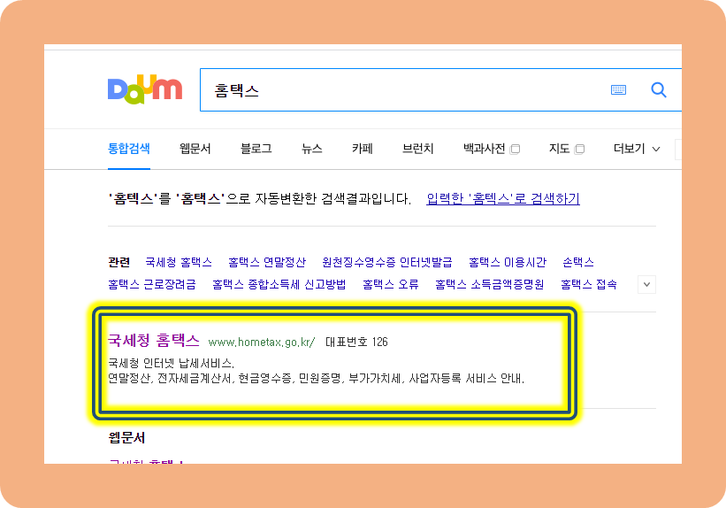 이번에는 홈텍스를 찾아봅니다.