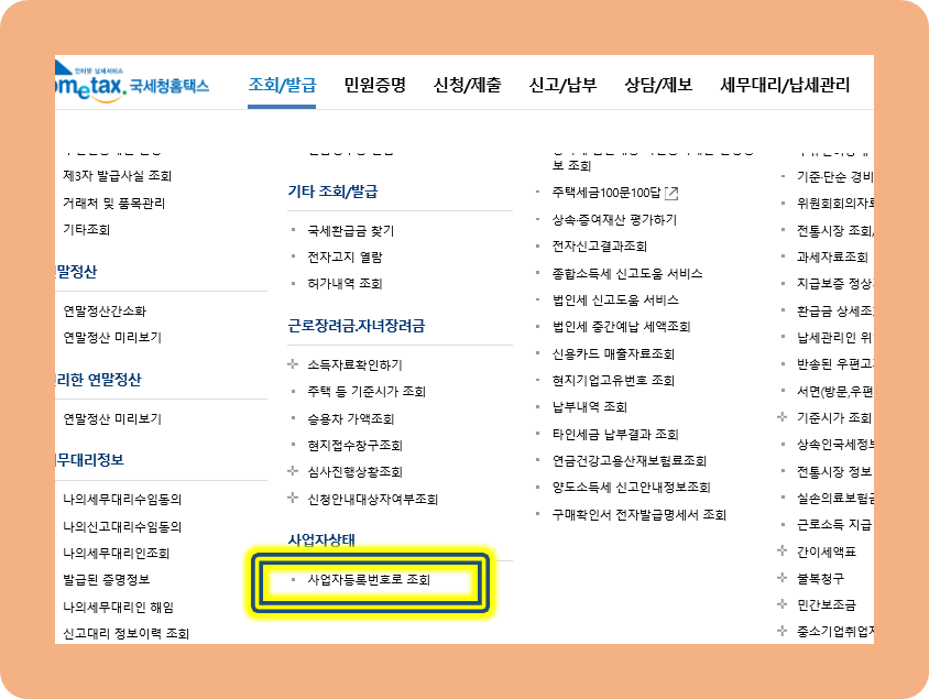 다음으로 홈텍스에서 사업자등록번호를 통해 조회하는 법을 말씀드릴게요.