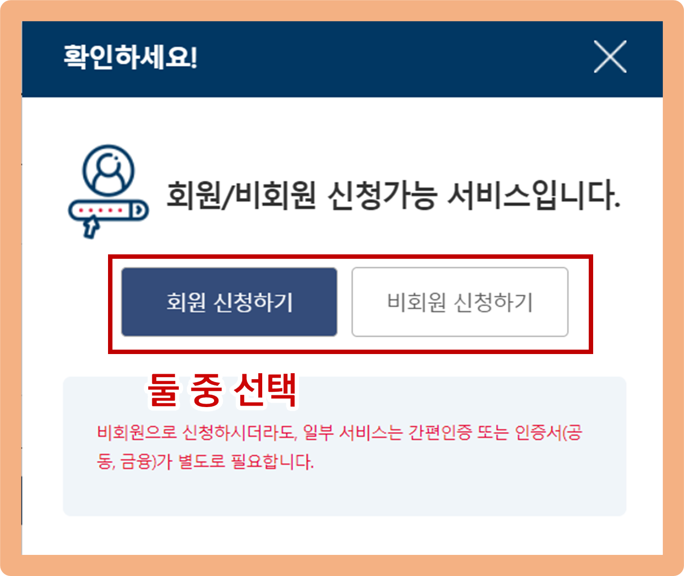 회원이신 분은 로그인을 해주시면 되고 비회원이신 분은 '비회원 신청하기'로 진행하시면 돼요.