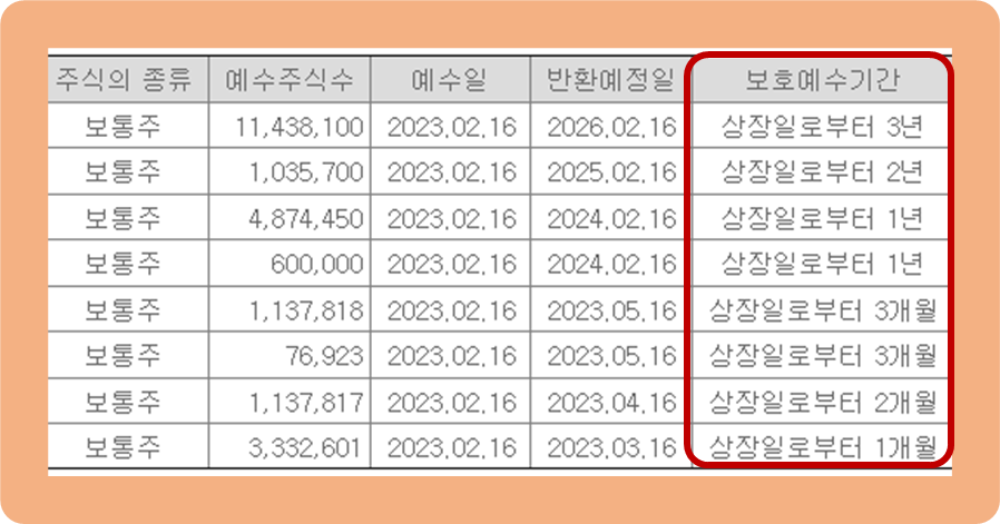 상장 시점으로부터 1년 이상 보호예수로 묶여있는 주식이 약 1,790만주 정도 된다는 점 참고하시기 바랍니다.