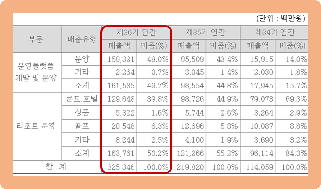 과거에는 리조트 운영 부문 매출이 압도적으로 많았는데, 최근에는 두 사업 부문의 매출 수준이 거의 비슷해진 상황이네요.