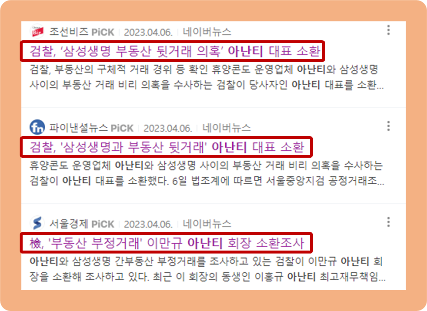 지난 2023년 3월에는 아난티 본사와 삼성생명 본사 등을 압수수색까지 했다고 하는데, 향후 이 사건의 전말이 어떻게 밝혀질 지 지켜봐야겠습니다.