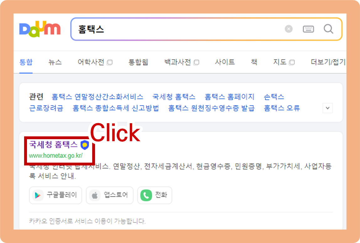 그럼 맨 위에 국세청 공식 홈페이지가 나타나는데요.