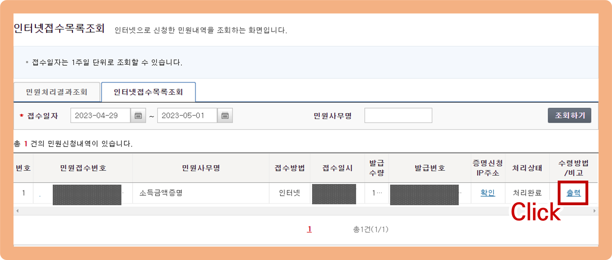 소득금액증명원 인터넷 발급 방법, 발급 완료
