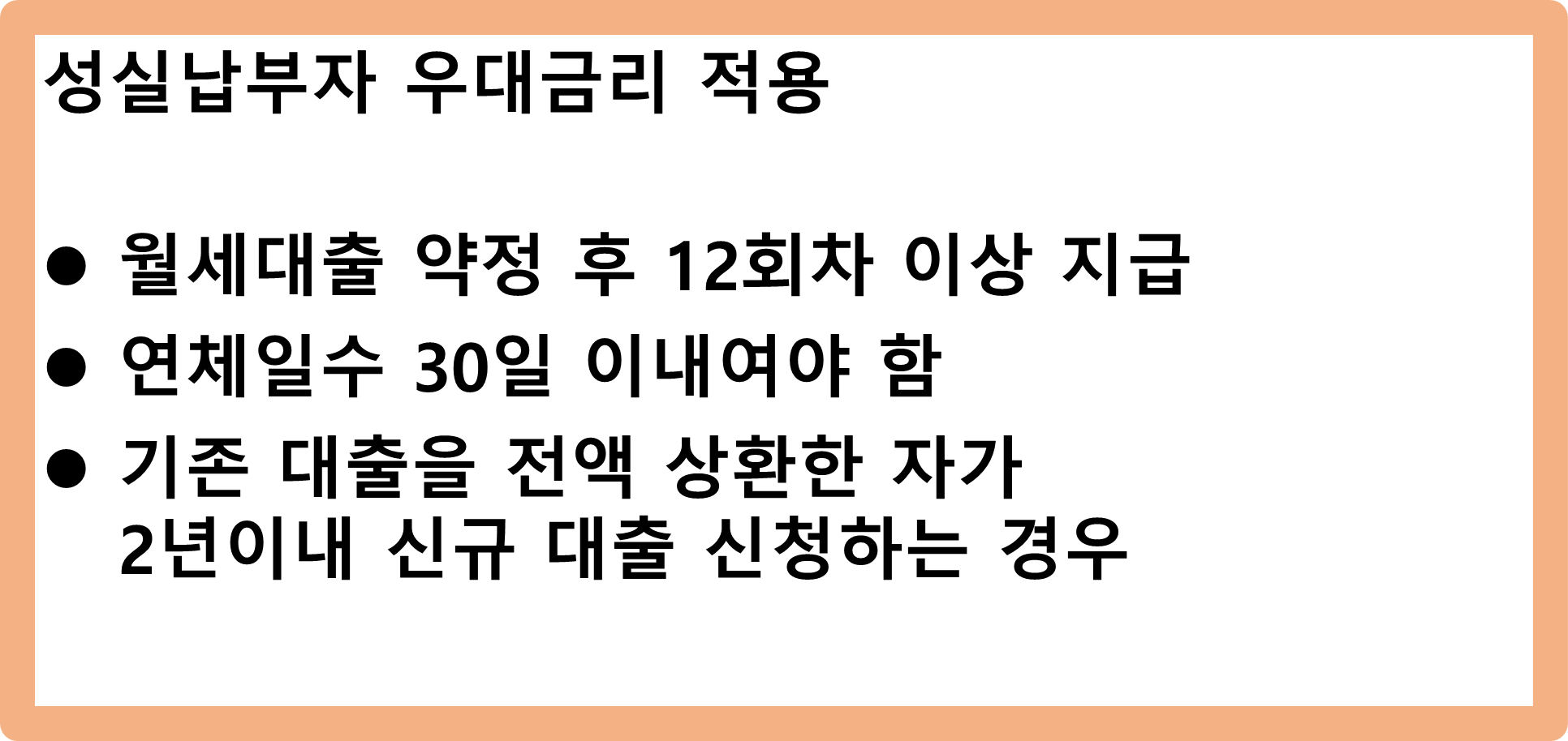 주거안정 월세대출 자격, 성실납부자 우대금리 혜택