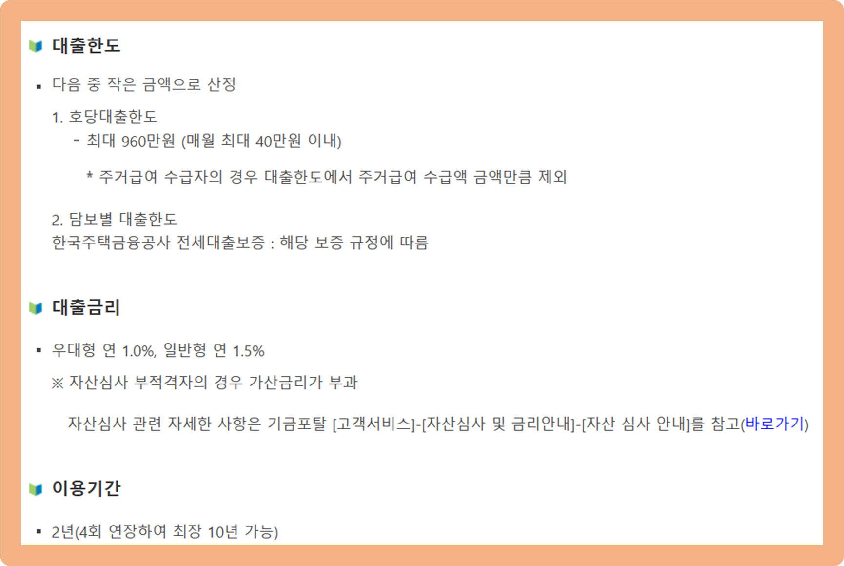 주거안정 월세대출 자격, 대출 한도, 금리, 이용 기간