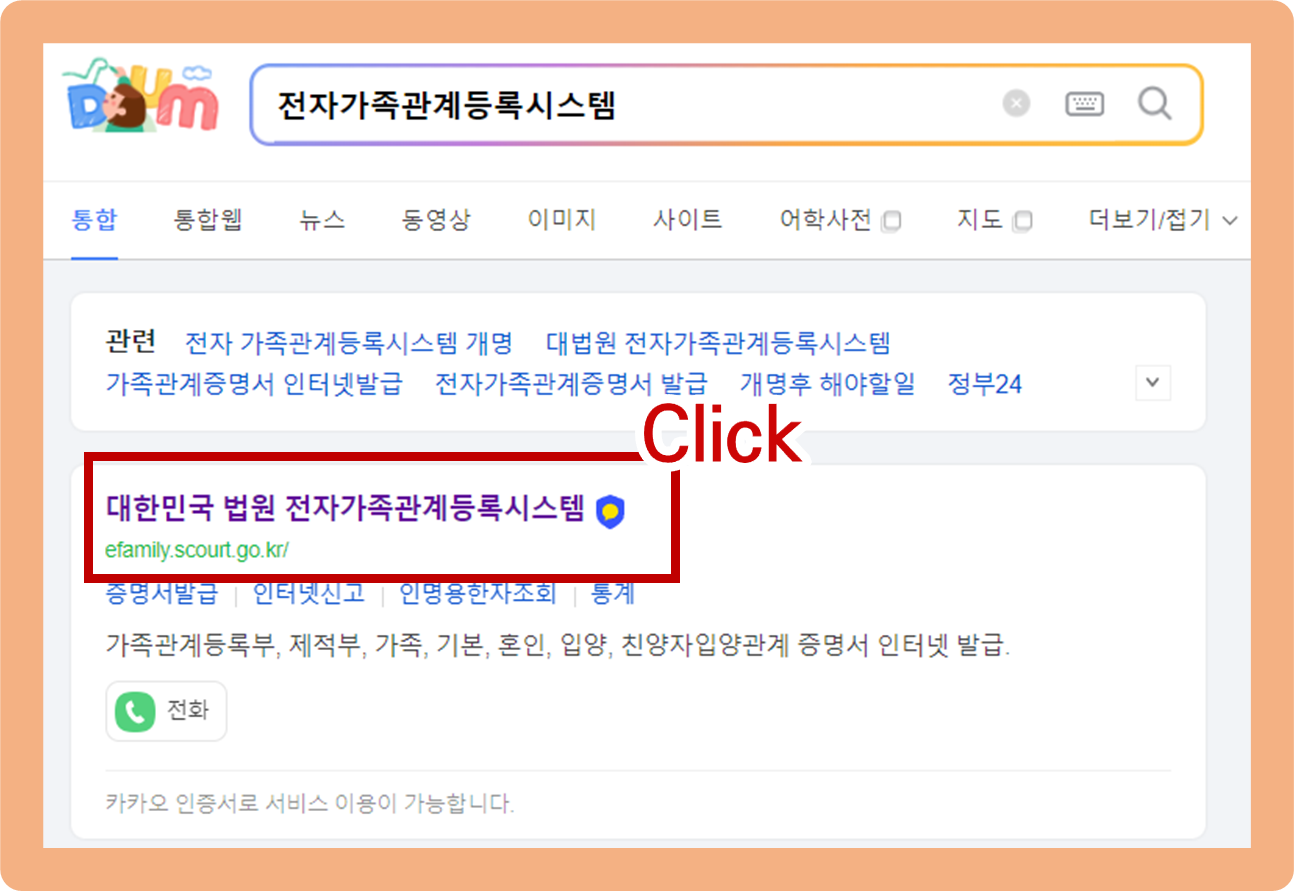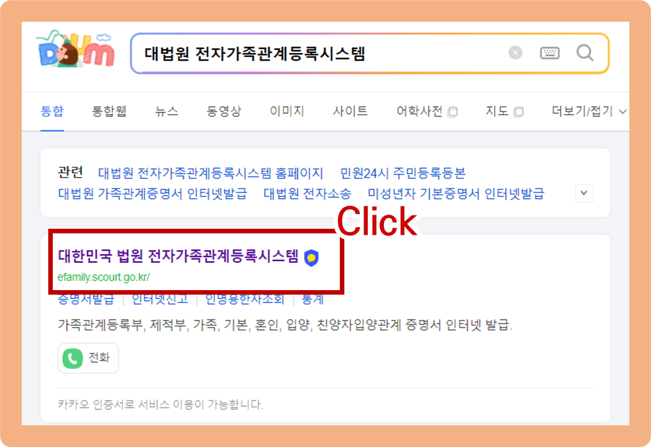 인터넷 발급과 마찬가지로, 검색창에 '전자가족관계등록시스템'을 검색해주세요.
