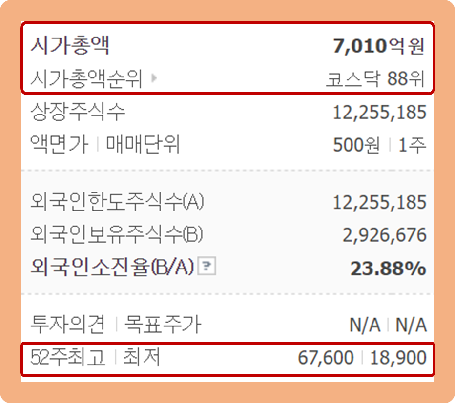 52주 최고가는 67,600원이며, 52주 최저가는 18,900원이네요.