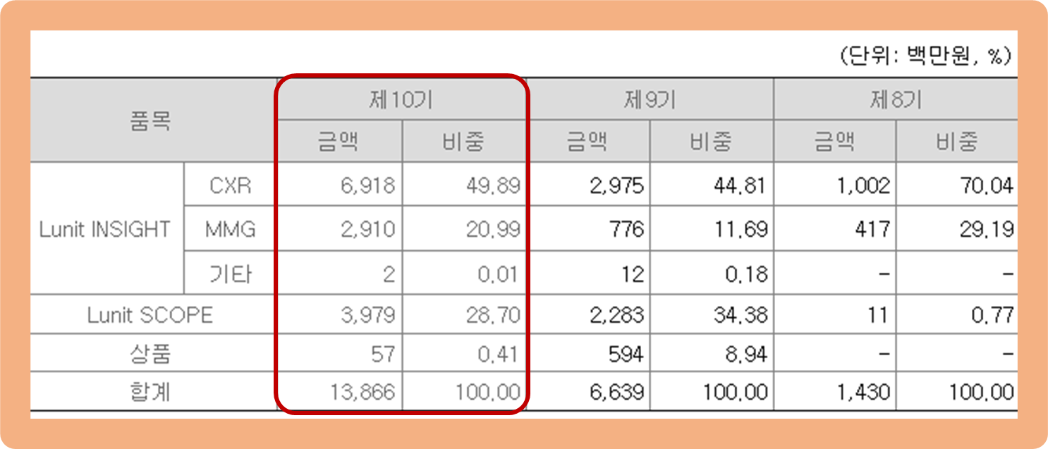 루닛 주가 전망, 주력 제품 매출 비중 비교