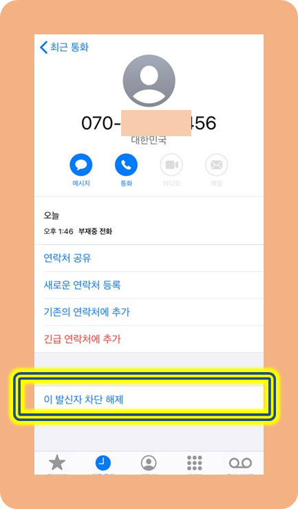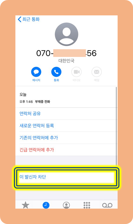 첫번째. 아이폰 전화 차단 방법(연락처 등록 안했을 때)