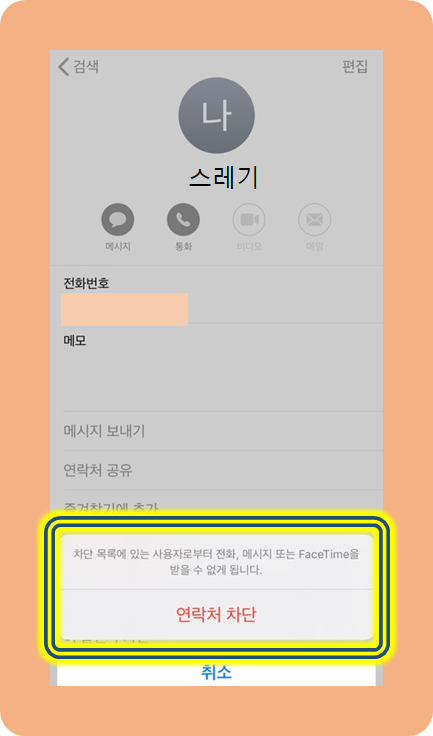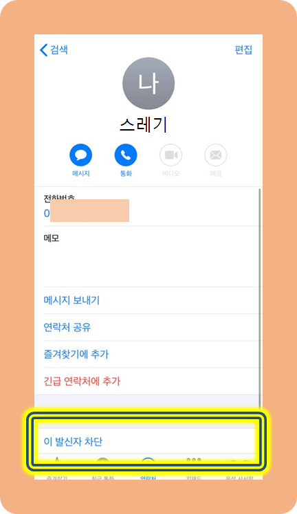 첫번째. 아이폰 전화 차단 방법(연락처 등록 했을 때)
