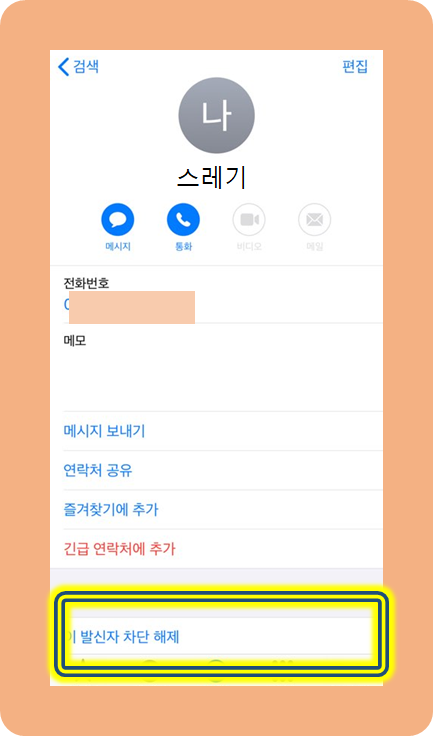위와 같이 이 발신자 차단 해제 버튼으로 바뀌었으면 차단이 완료된 것이에요.