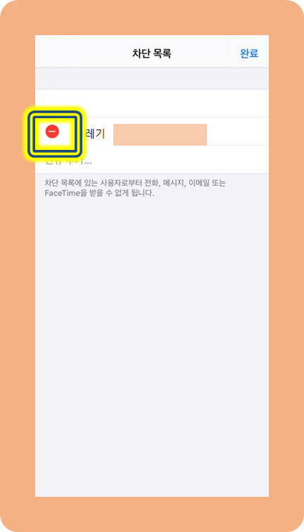 여 중에서 차단을 해제하고 사람 바로 옆에 있는 빨간색 버튼을 눌러주세요.