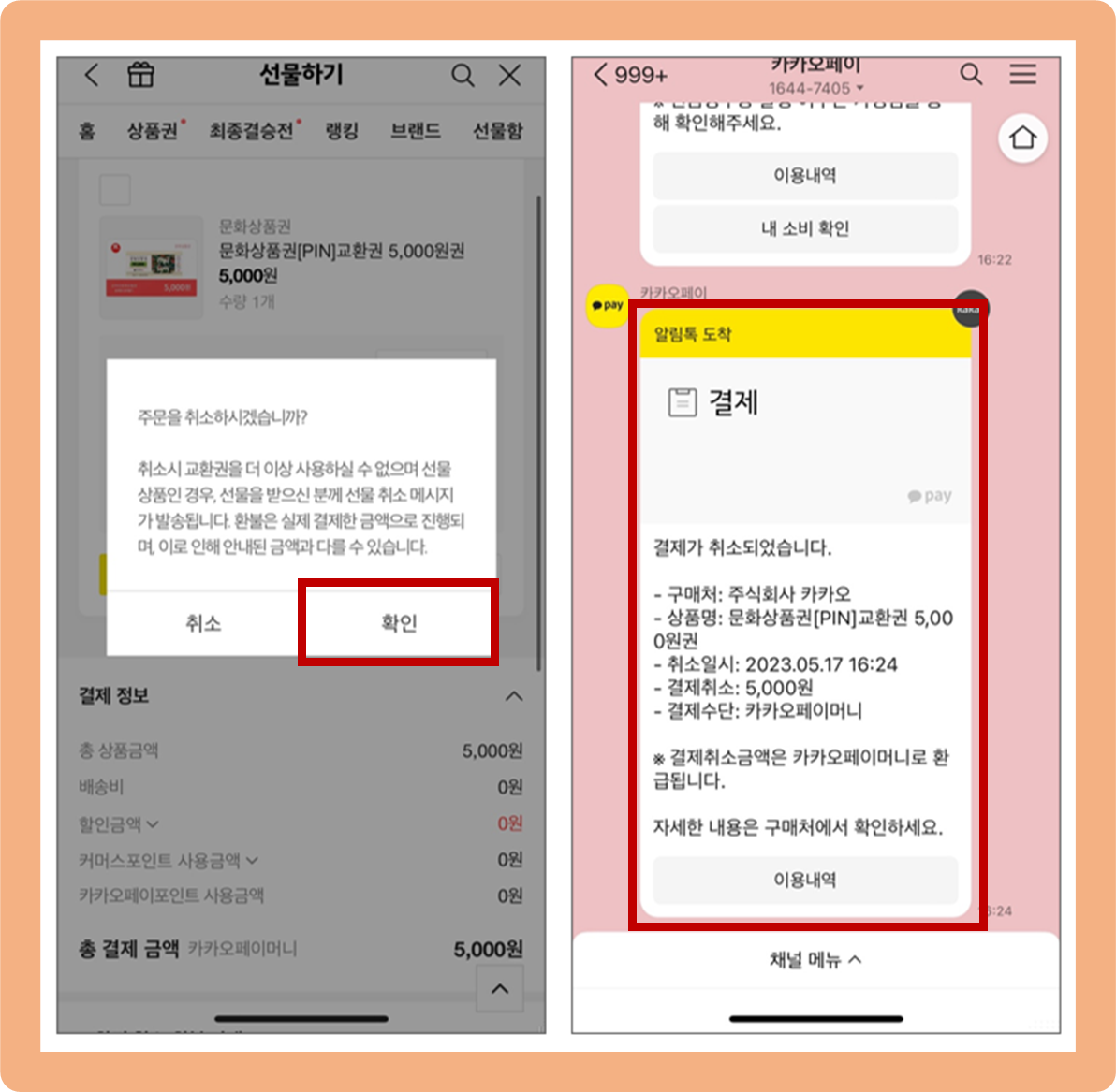 카카오톡 선물 환불 방법, 환불 완료!