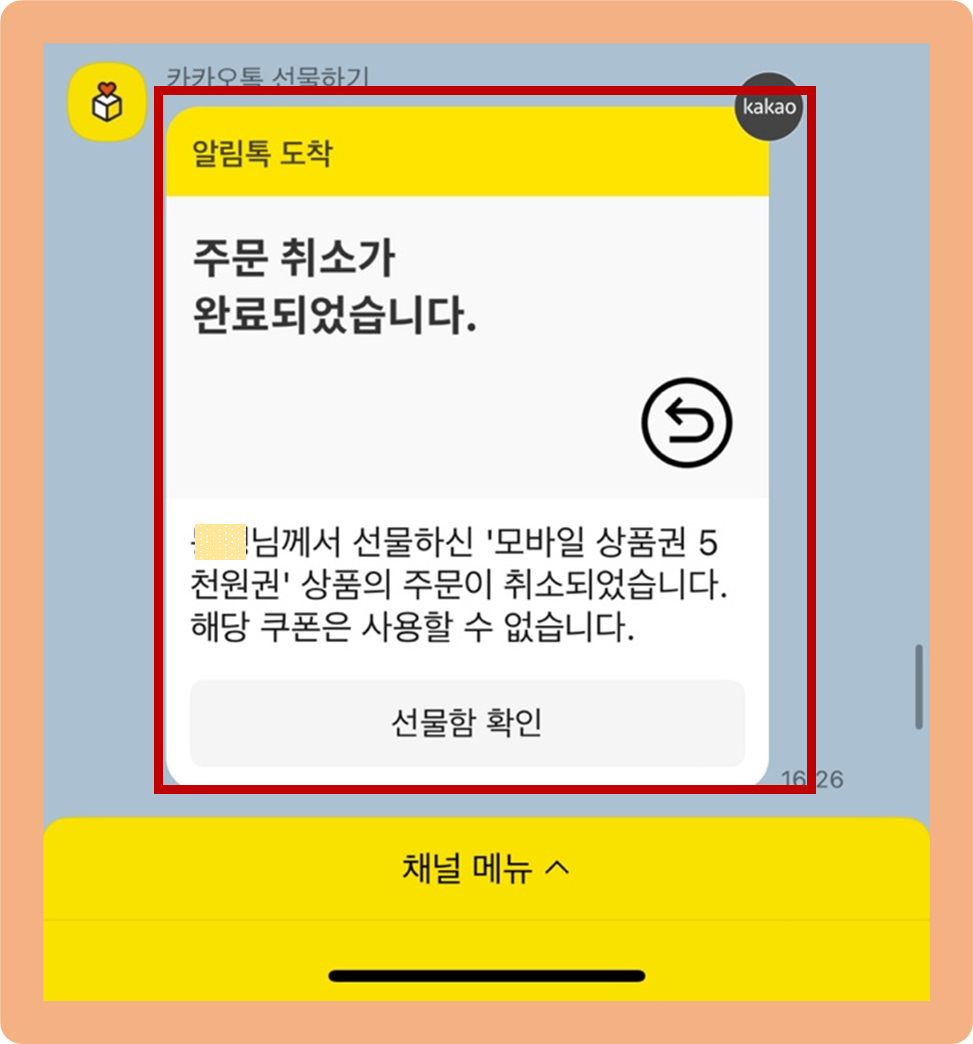 그리고 상대방에게도 여러분이 선물 받기를 취소했다는 알림 메세지가 발송된다는 점 참고바랄게요.
