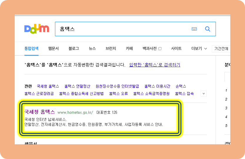 포털 사이트 검색 상자에 홈택스를 입력하고 검색해주세요