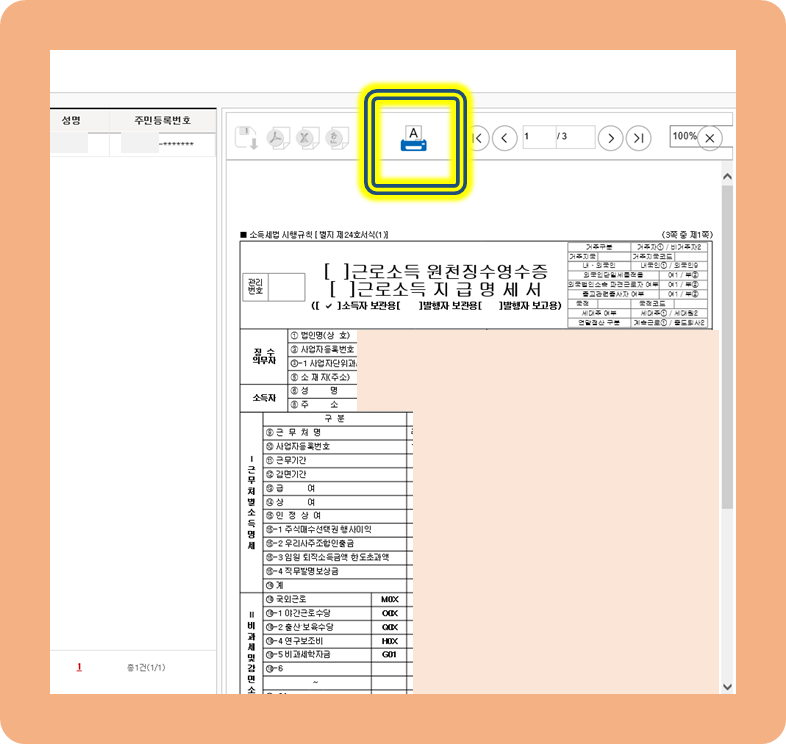 그러면 새 창에서 근로소득원천영수증이 열려요.