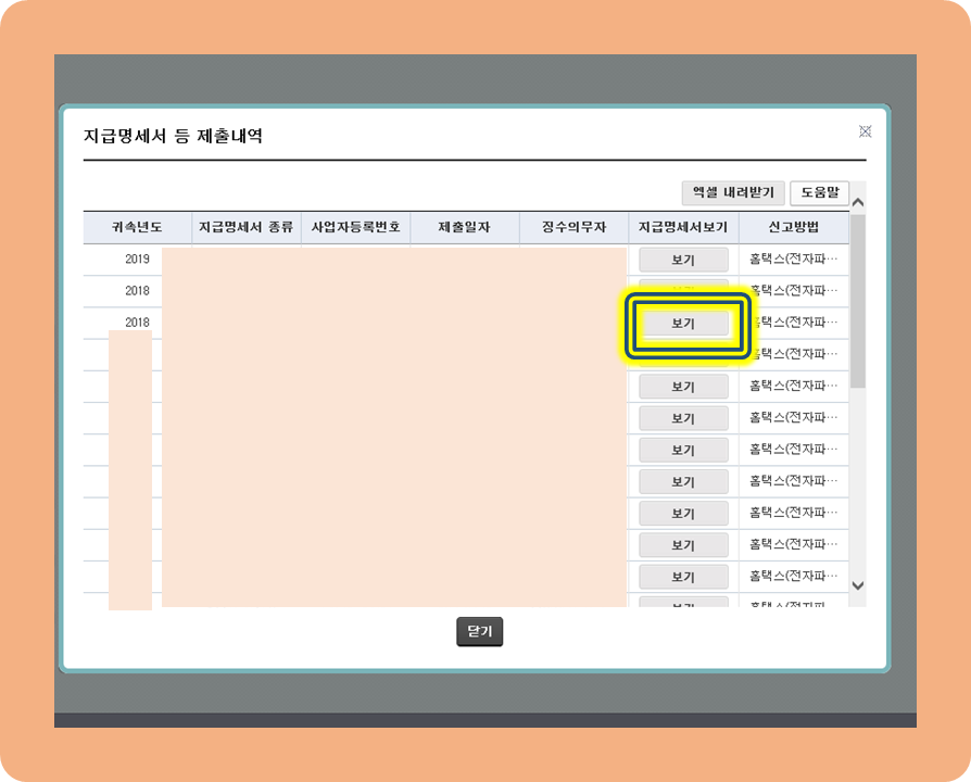 여기에서는 지급 명세서 등 지출 내역을 클릭해주세요.