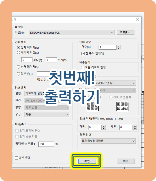 인쇄를 원하시면 확인을 눌러주시면 그냥 완료에요.