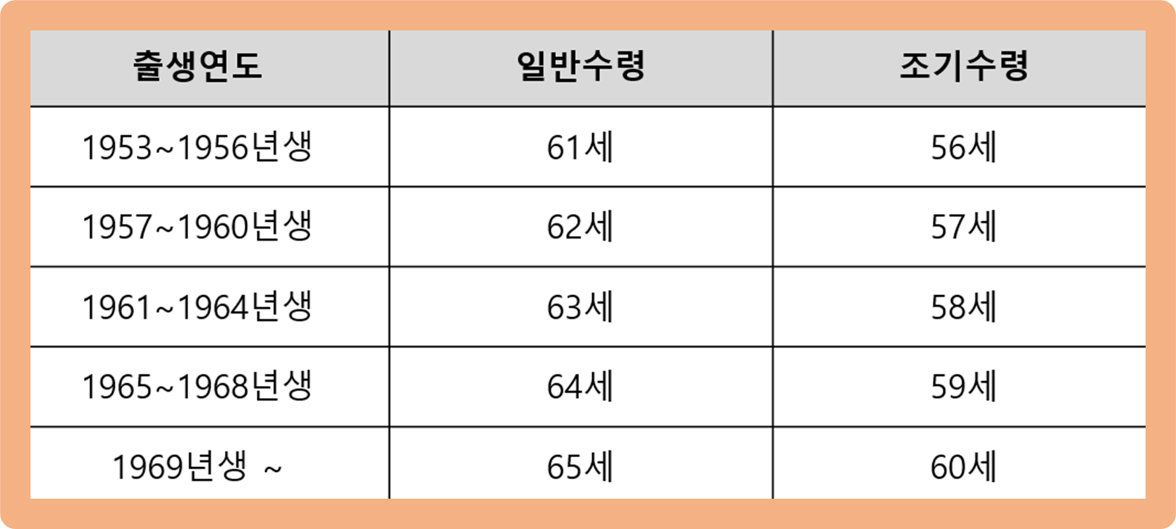 현재 기준으로 1969년도 이후에 태어나신 분들은 만 65세에 국민연금을 수령하실 수 있어요.
