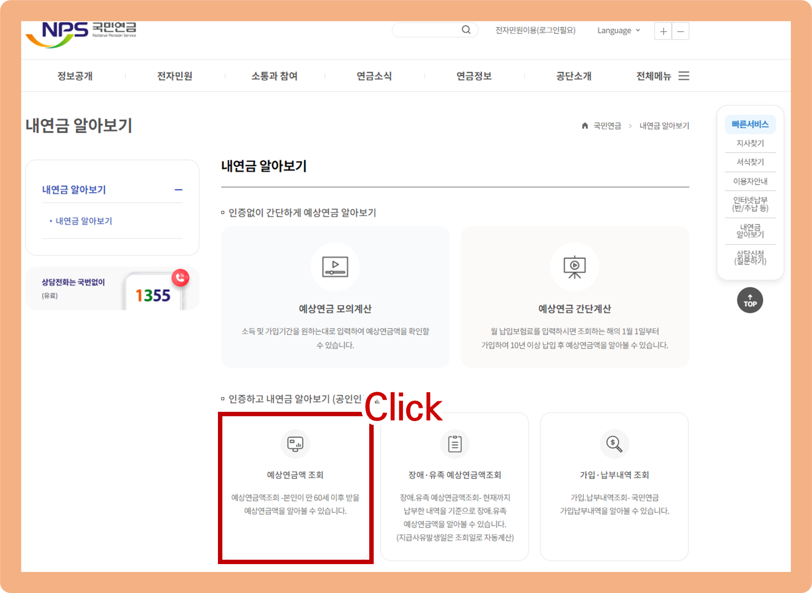 국민연금 예상수령액 조회, 예상수령액 확인