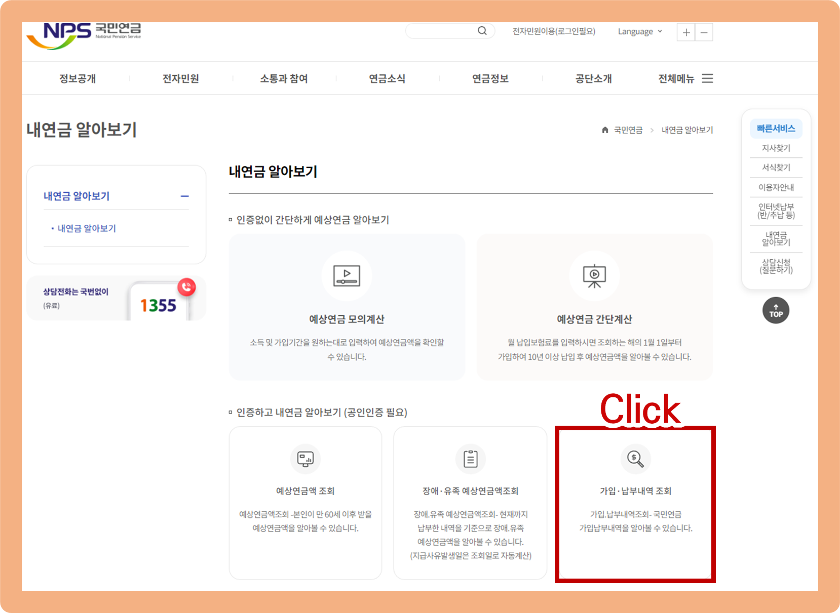 국민연금 납부내역 조회, 국민연금공단 접속
