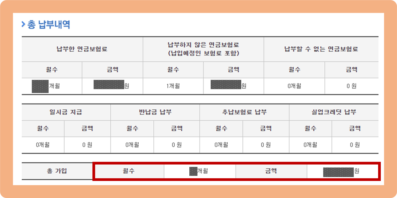 국민연금 납부내역 조회, 총 납부내역 확인