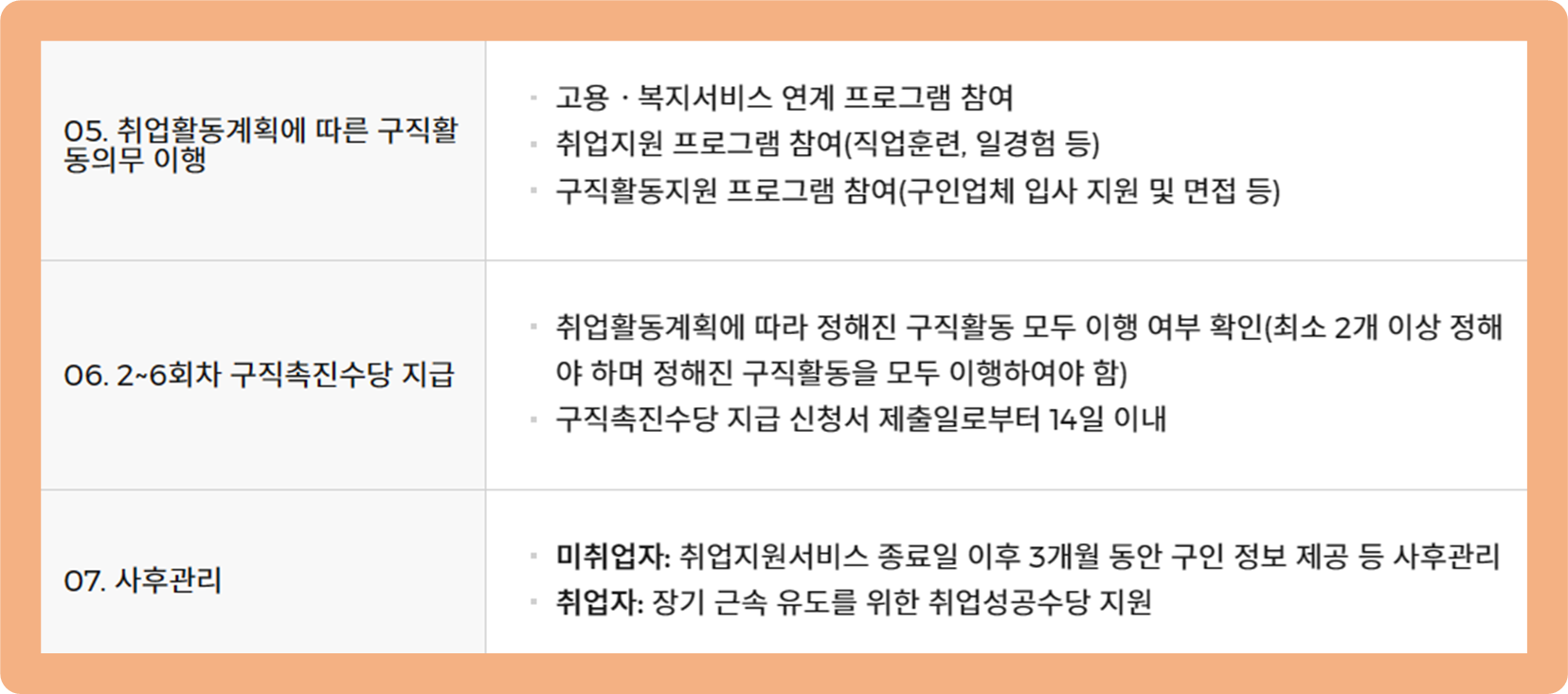 - 취업자 : 성공 수당 지원 / 미취업자 : 3개월 사후관리 실시