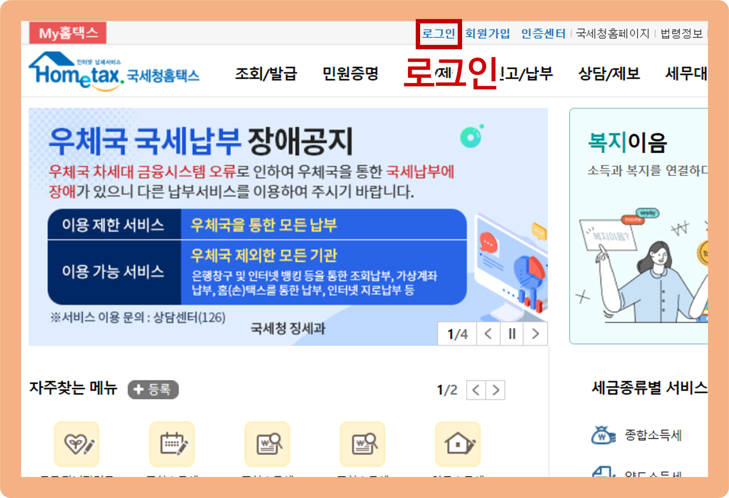 우선 홈택스 공식 사이트로 들어가주셔야 되는데요.