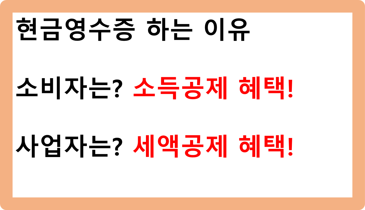 즉, 현금영수증을 발급해야 하는 가장 중요한 이유는 바로 소득공제 혜택 때문인 것이예요.