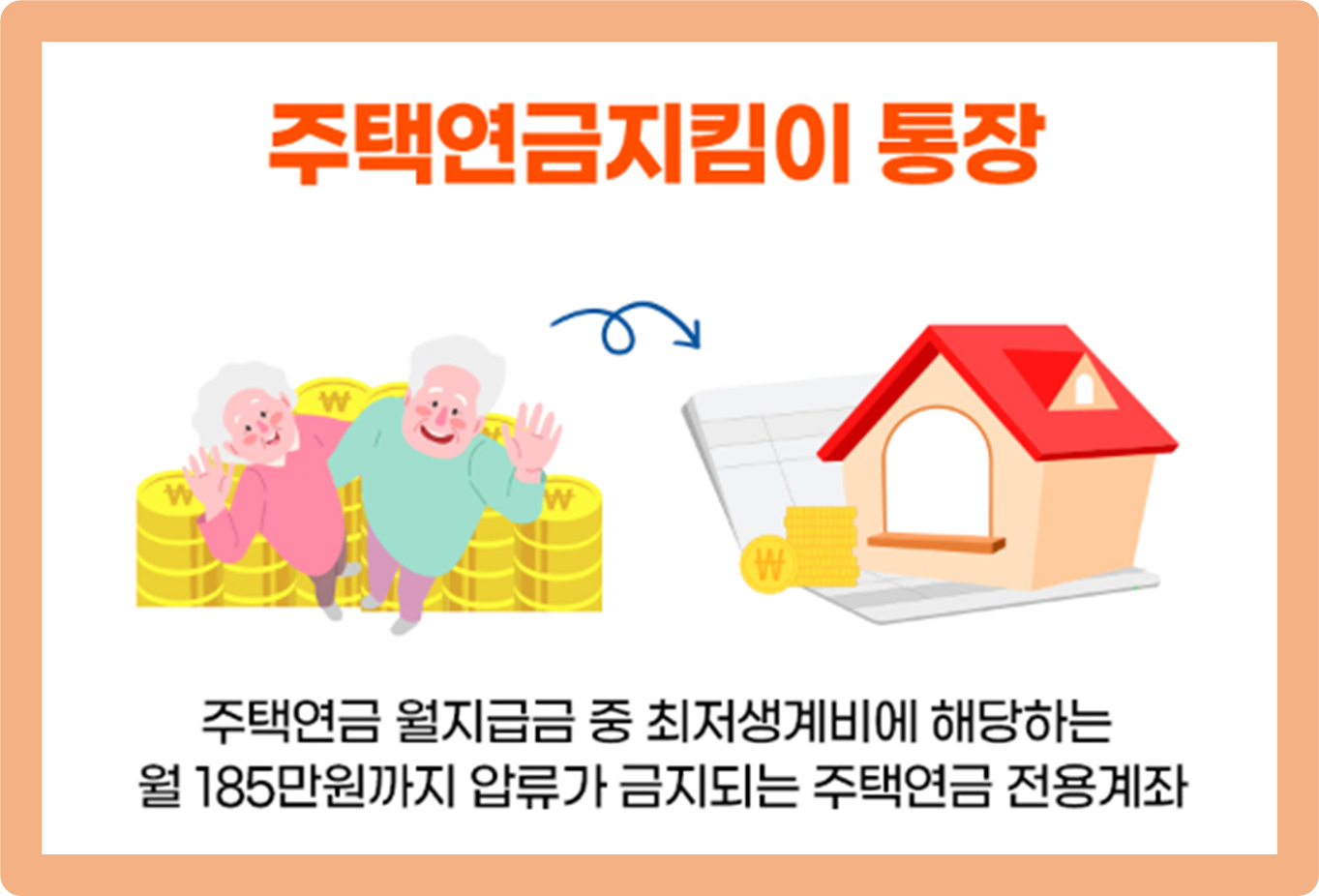 그리고 매월 주택연금 수령액 중 최저생계비 수준인 185만원까지만 입금이 가능하며, 그 금액에 대한 압류가 금지되어 보다 안정적인 수령을 가능하게 해주는 주택연금지킴이라는 통장이 있는데요.